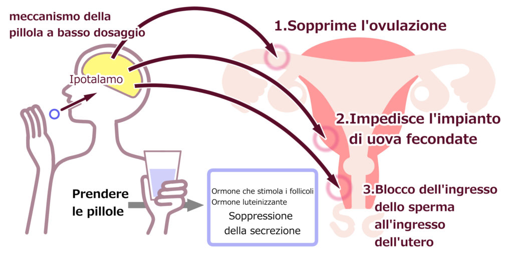 L'assunzione di pillole a basso dosaggio aumenta i livelli ematici degli ormoni ovarici (estrogeni, progestinici) e li mantiene a un livello costante, prevenendo lo sviluppo del follicolo e l'ovulazione.